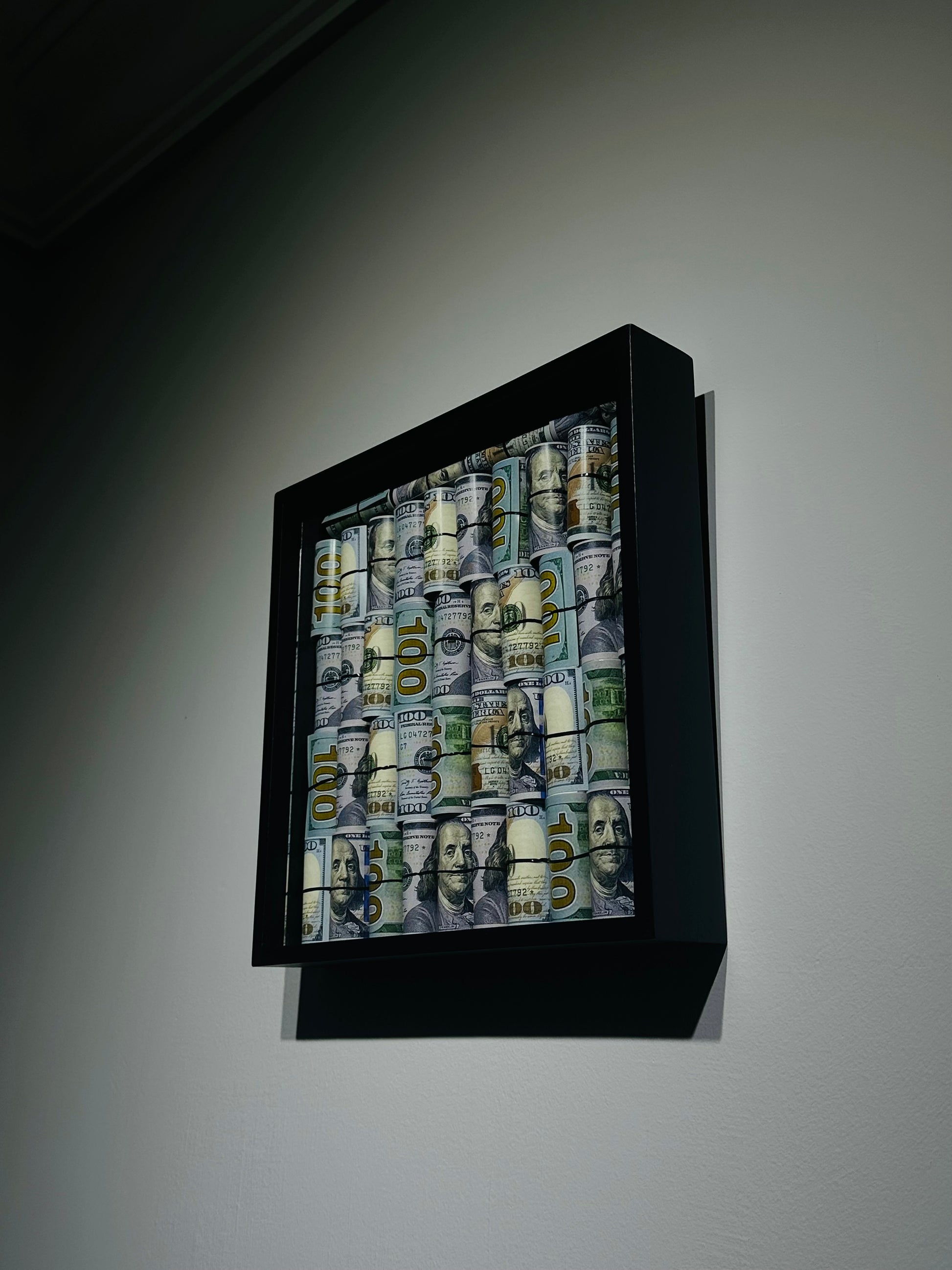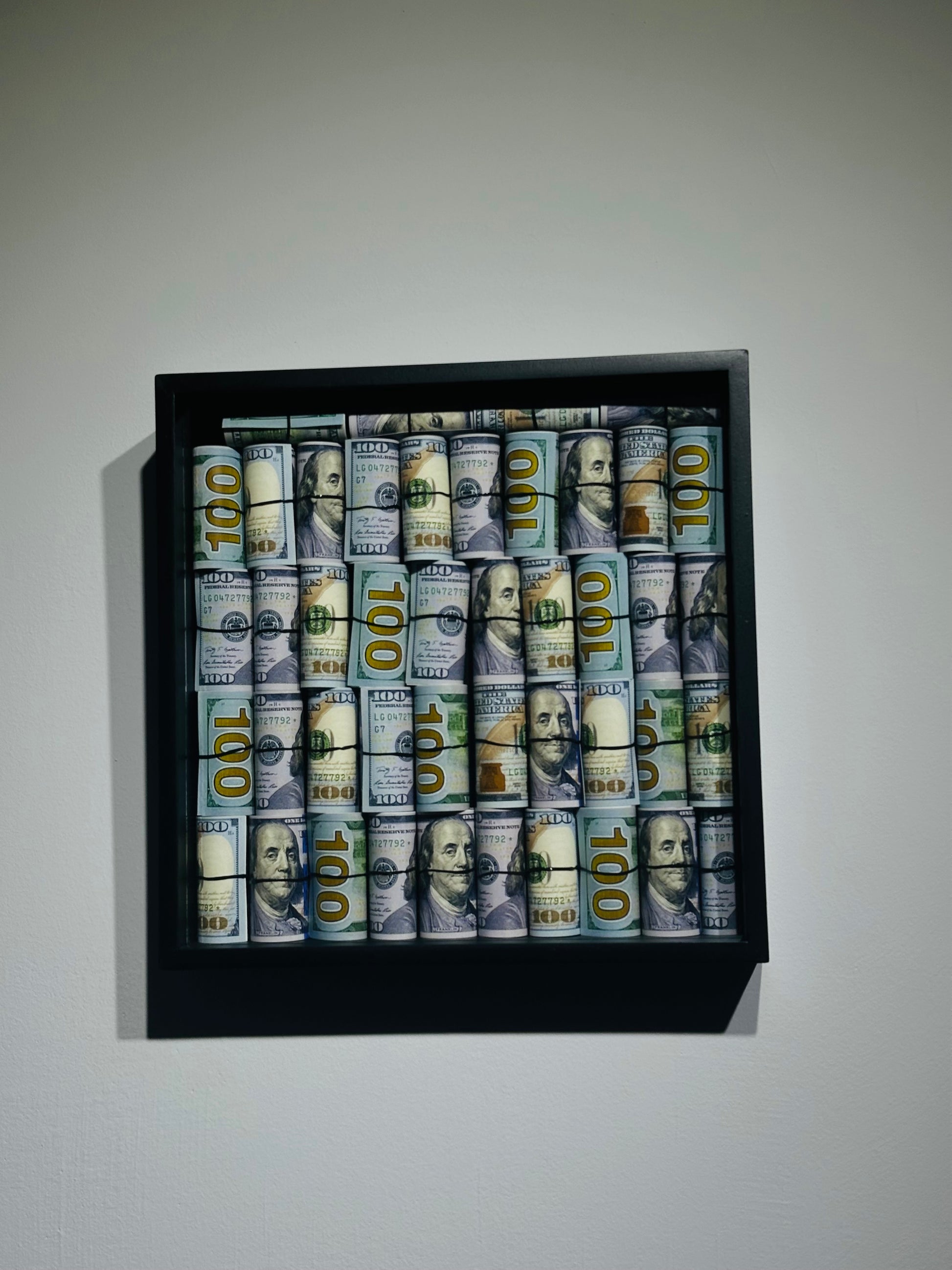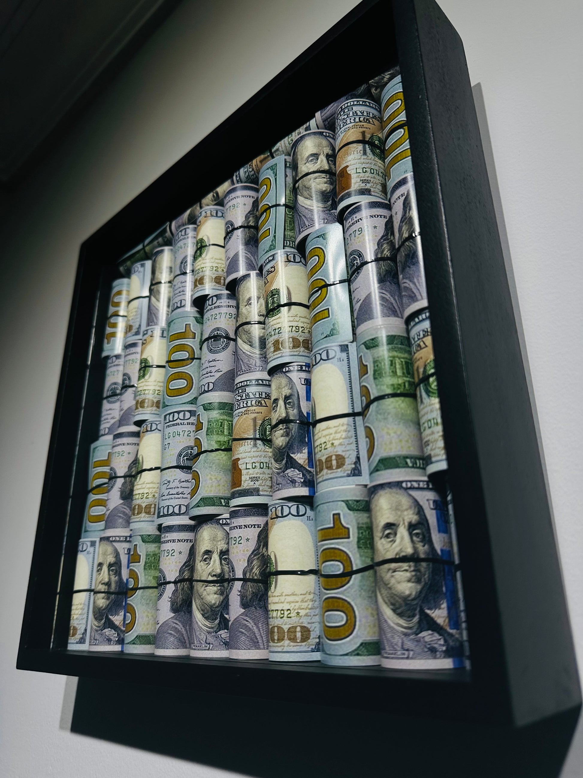 A 3D illusion of endless rolled-up cash—this frame gives depth, drama, and a strong "never-ending grind" vibe.