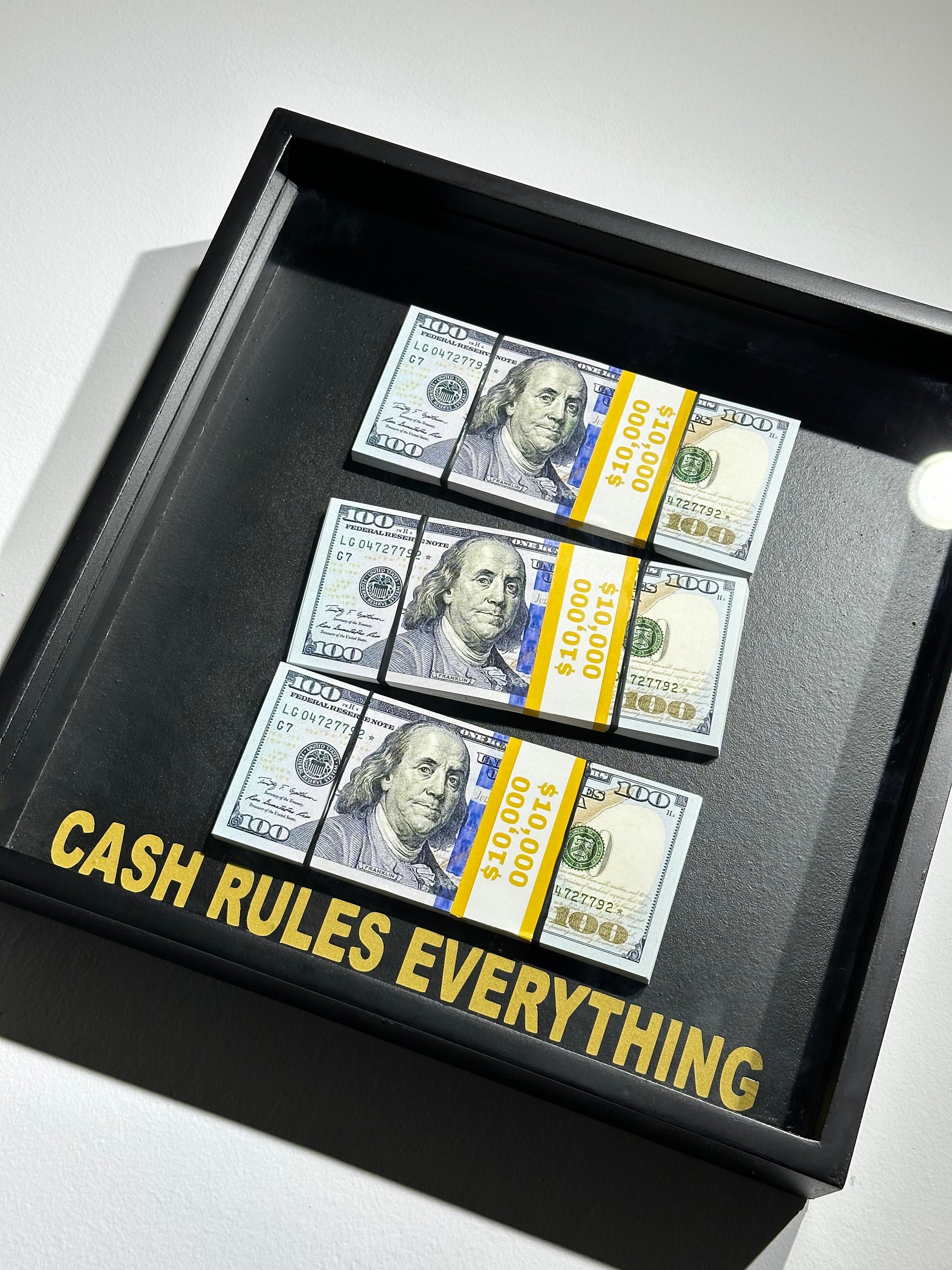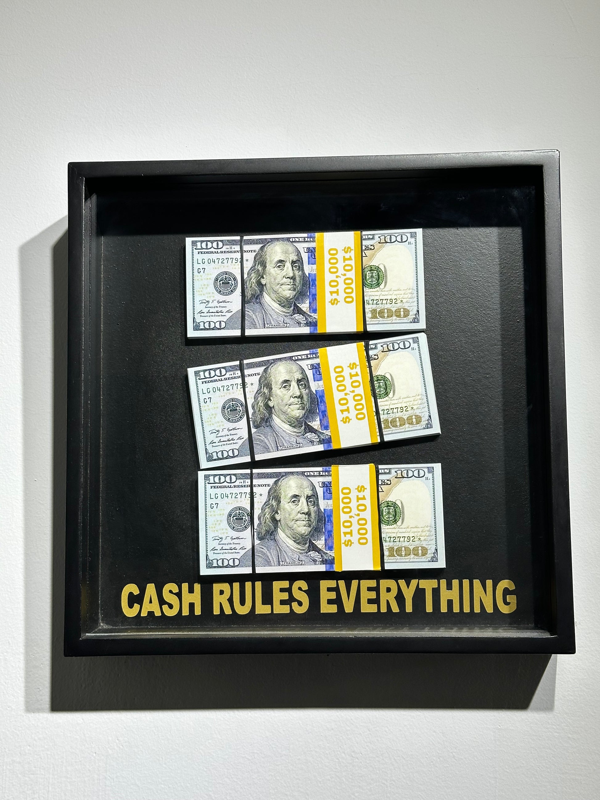 A bold and direct message framed with precision — featuring stacked $100 bills and the iconic quote “CASH RULES EVERYTHING” in standout gold letters. This piece isn’t just décor, it’s a mindset. Perfect for those who live by the hustle and believe money talks loudest.